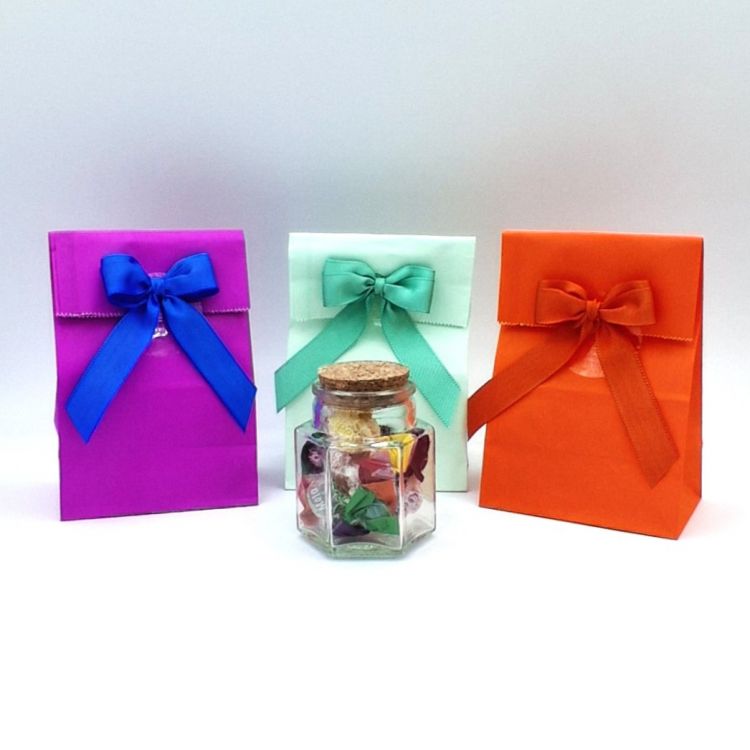 DettagliBarattolino in vetro con tappo di sughero (H cm 7) contenente n° 7 gelatine alla frutta, confezionato in sacchetti ...