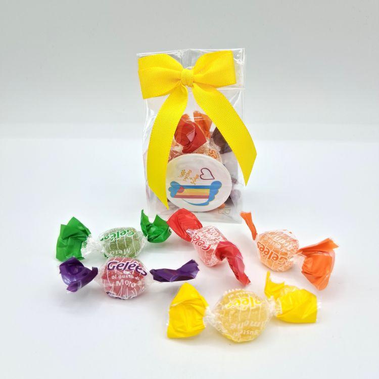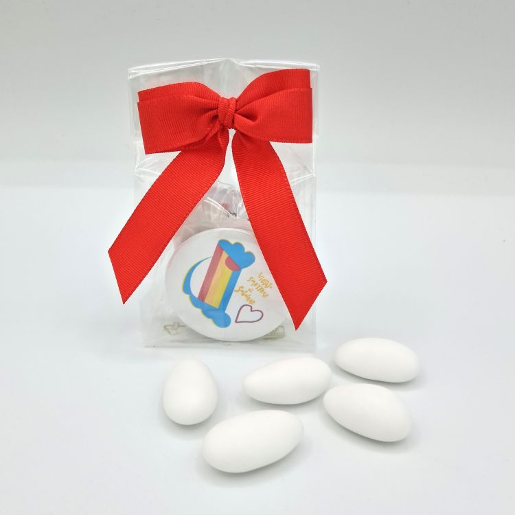 DettagliBustina contenente caramelle gommose alla frutta e spilletta UGI "Vietato smettere di sognare" e ...