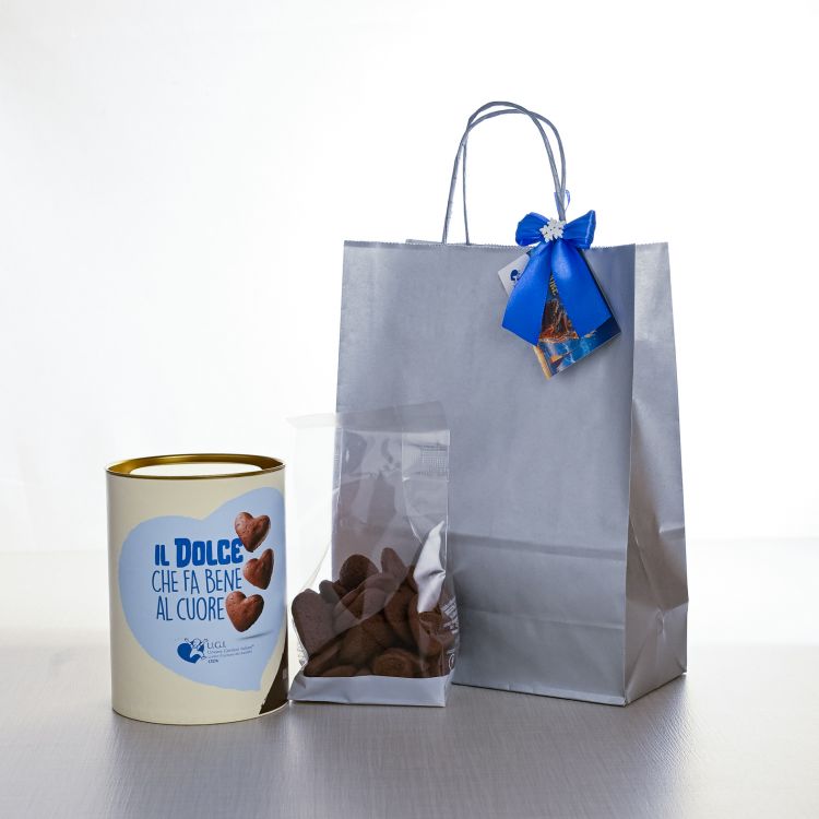 DettagliBarattolo con personalizzazione UGI contenente un sacchetto di cuoricini al cacao (biscotti con cacao amaro) Briccodolce ...